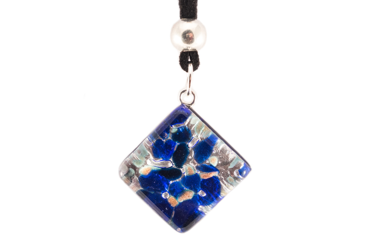 This unique pendant is made by hand using golden crackelure and Murino - colored figured elements that are located inside the decoration. This is the proprietary technology of Muranoglass blowers Murano, also called Millefiore.