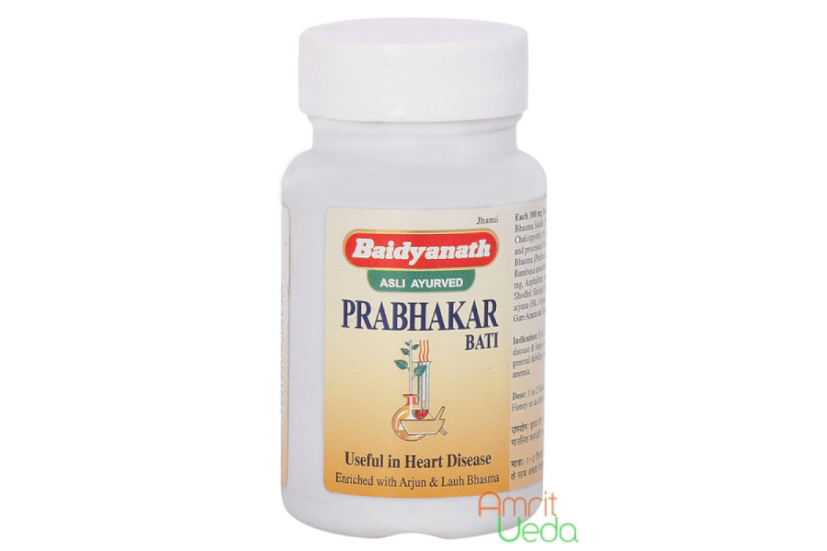 Prabhakar vati è un meraviglioso tonico per il cuore, normalizza la pressione sanguigna. Rafforza il muscolo cardiaco, stimola la circolazione, lenisce il dolore cardiaco e le palpitazioni, migliora il metabolismo.
