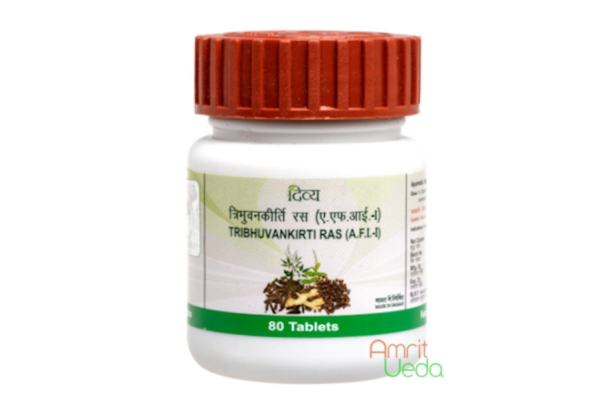 ¡En nuestra tienda puedes comprar el auténtico Tribhuvan Kirti Ras, 80 comprimidos de la farmacia Patanjali-Divya, al mejor precio!